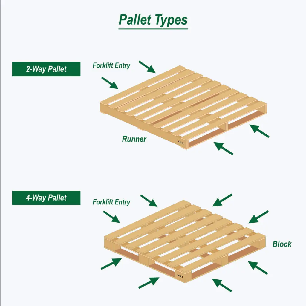 Wooden pallets come in a variety of designs to meet the needs of different industries, handling equipment, and load requirements. The most common are 2-way and 4-way pallets. Choosing the right pallet type can help improve warehouse efficiency, transportation safety, and storage stability.